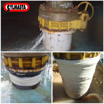 The application is completed by overwrapping the initial sealant with SylWrap HD Pipe Repair Bandage. Wetting the bandage activates the resin.